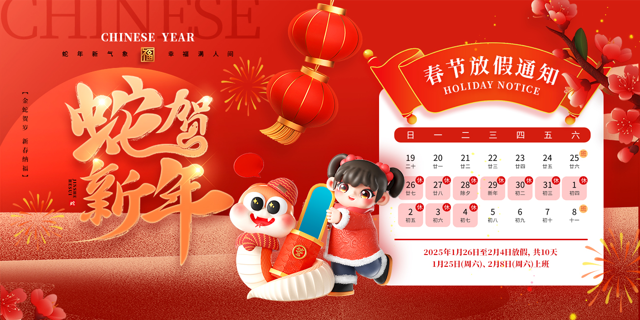 2025年冠亞恒溫公司春節(jié)放假通知 2025/01/17 分類:公司動態(tài) 546春節(jié)將至,衷心感謝您在過去一年里的密切關注與支持!冠亞恒溫全體成員衷心感謝您一直以來的信任和支持,預祝您新春愉快!冠亞恒溫春節(jié)放假通知如下:2025,祝您蛇年大吉,平安健康,萬事勝意!本內(nèi)容版權歸無錫冠亞恒溫制冷技術有限公司所有,轉載請說明出處m.xiaofentu.com,盜版必究!咨詢合作:400-100-3173 上一篇: 【客戶案例】某企業(yè)半導體專用溫控設備chiller應用案例 下一篇: 【設備發(fā)貨】5臺防爆制冷加熱一體機chiller出貨