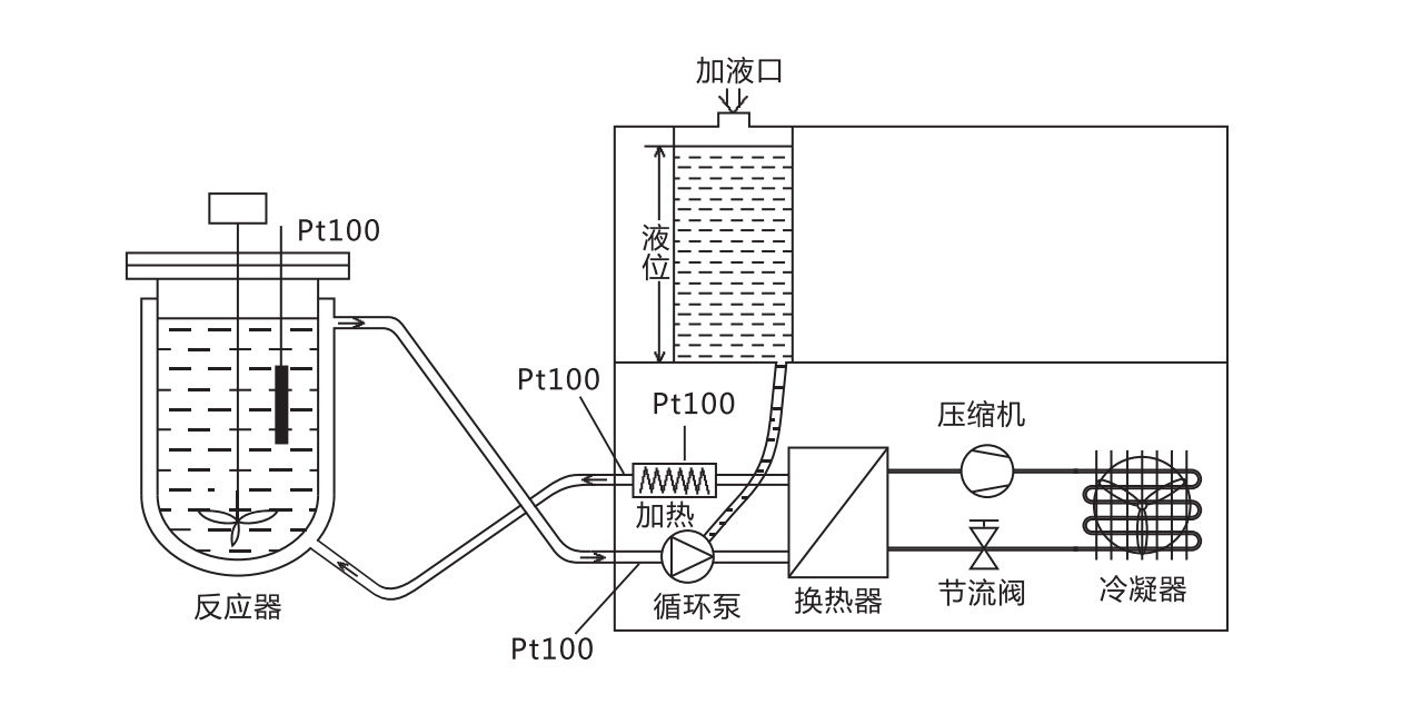 控溫系統結構設計原理和功能優勢 采用全密閉管道式設計,降低導熱液需求量的同時,提高系統的熱量利 用率,達到快速升降溫度。