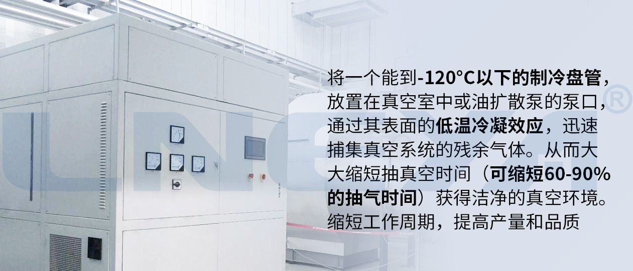 超低溫直冷機也可以如氣體捕集運用,將制冷劑直接通入捕集器蒸發,通過捕集器表面冷凝效應,迅速捕集空間中的氣體。