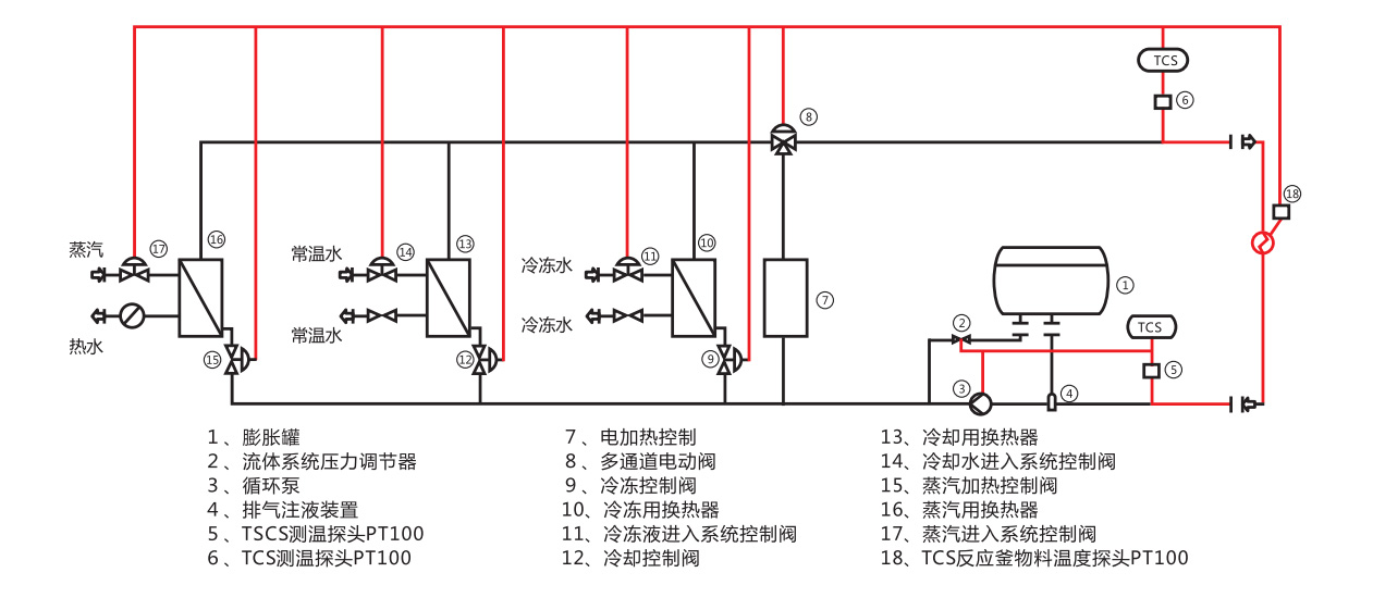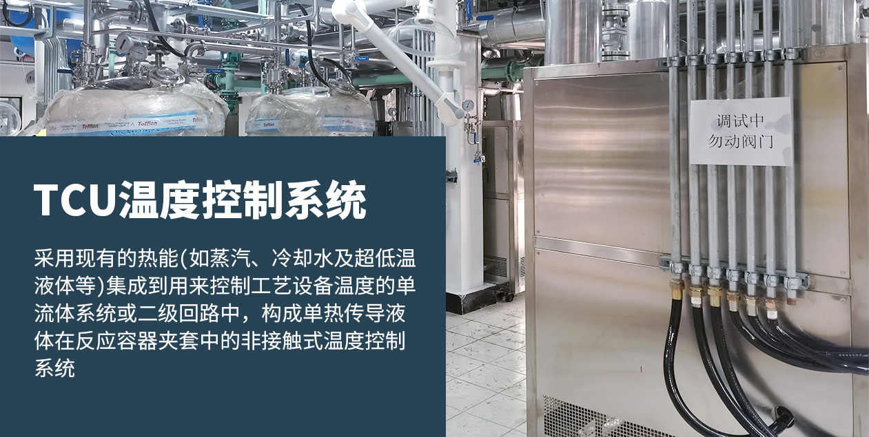 TCU控溫系統采用現有的熱能(如蒸汽、冷卻水或超低溫液體——即“初級系統”)集成到用來控制工藝設備溫度的單流體系統或二級回路中,構成單熱傳導液體在反應容器夾套中的非接觸式溫度控制系統。