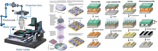 光刻是制造過程中一個(gè)至關(guān)重要的光學(xué)工藝,用于在單個(gè)晶圓表面創(chuàng)建復(fù)雜的電路圖案。這是通過將晶圓涂覆上光敏材料(稱為光刻膠),然后通過包含所需圖案的掩模,以深紫外線(DUV)或ji紫外線(EUV)曝光來實(shí)現(xiàn)的。曝光的光刻膠發(fā)生化學(xué)變化,使其能夠選擇性地去除。它留下的圖形層作為后續(xù)處理步驟(如蝕刻和沉積)的保護(hù)層。