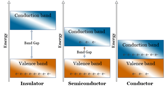 通過引入雜質(zhì)的過程(稱為摻雜)可以改變半導(dǎo)體的導(dǎo)電性。半導(dǎo)體的能隙(或帶隙)通常在2~3電子伏特(eV)之間,這對于決定其電學(xué)性質(zhì)至關(guān)重要。正是這種帶隙將半導(dǎo)體與導(dǎo)體和絕緣體區(qū)分開來,使它們在特定條件下能夠?qū)щ姟?/p>