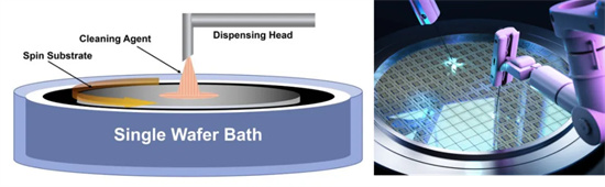 濕法刻蝕是一種化學(xué)過程,它將晶圓浸入液體蝕刻劑溶液中,刻蝕劑與暴露材料反應(yīng),溶解并去除它。刻蝕劑的選擇取決于被蝕刻材料以及所需的刻蝕速率和選擇性。濕法刻蝕通常是各向同性的,即在所有方向上均勻去除材料,這可能導(dǎo)致特征的下切,并限制蝕刻結(jié)構(gòu)的分辨率。